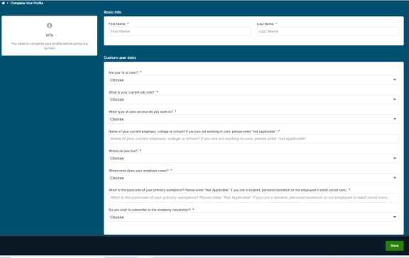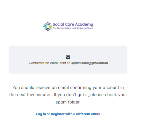 We suggest you use your personal e-mail address rather than your work e-mail address. The social care academy is your training portal where you can build a record of training that you can take with you should you change employers.