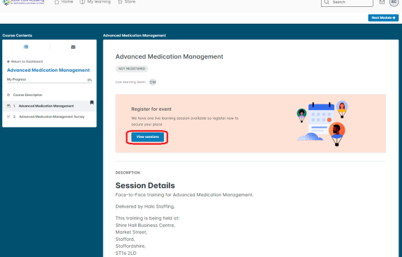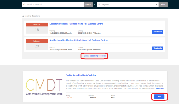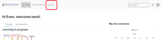 You can view what courses are available from one of two ways. You can either log-in to your account the normal way and then click “Store” at the top of the dashboard. Alternatively, you can visit https://portal.staffsstokecareacademy.co.uk/store.