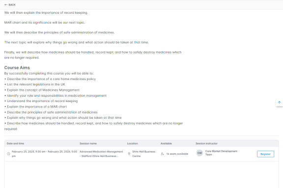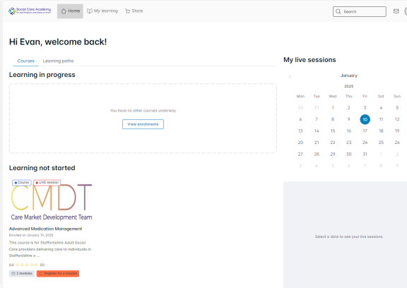 The learning portal is accessible for free at https://portal.StaffsStokeCareAcademy.co.uk where you can find in-person and online training sessions, as well as e-Learning.