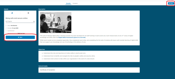You will now be taken to the training course content. Click “Start". You can click either start button.